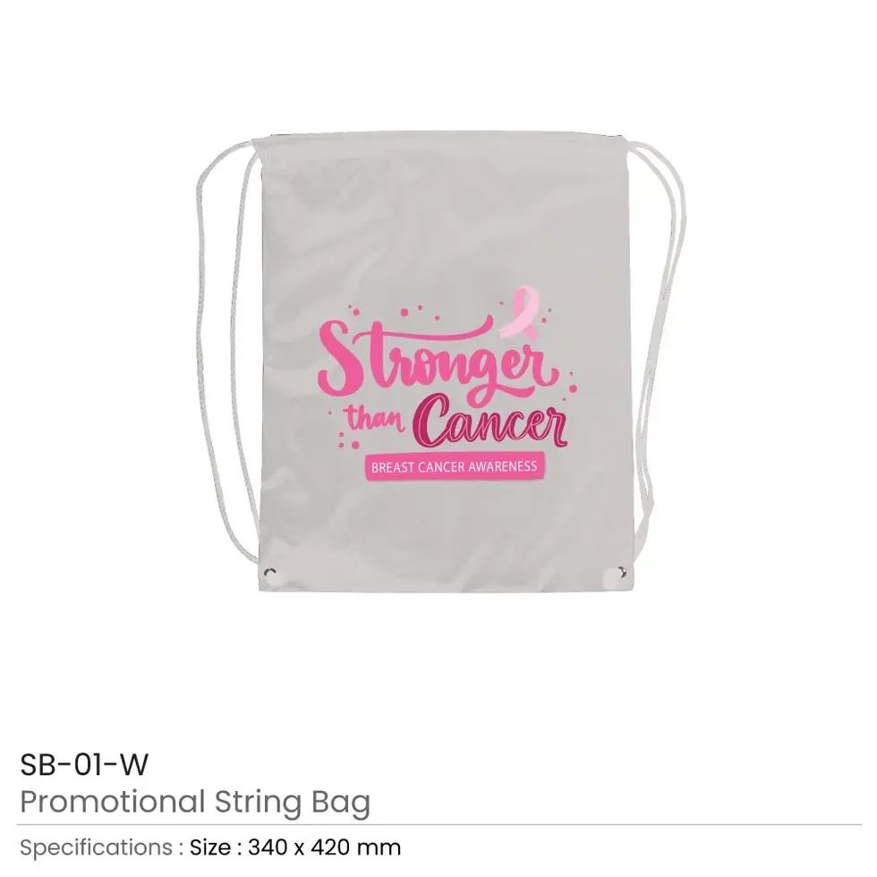 - String Bags with Breast Cancer Awareness Logo